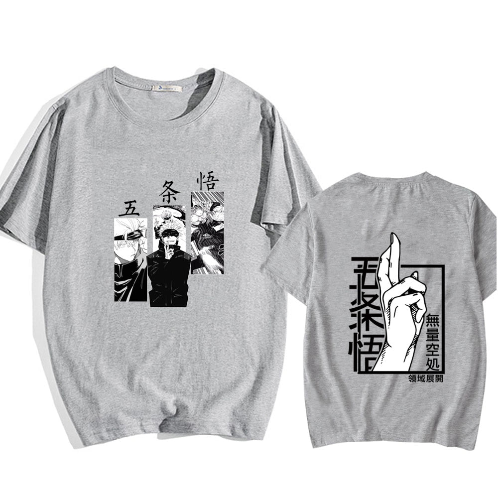 Combine comfort and style with cursed energy. Order your Jujutsu Kaisen Oversize T-Shirt today and embrace a bold and fashionable look that captures the symbols, characters, and allure of the Jujutsu Kaisen series!