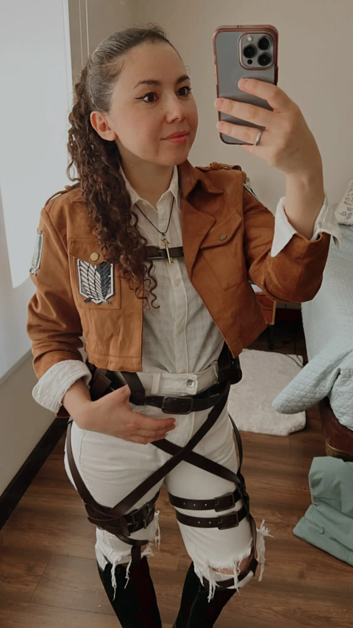 Strap in for battle (or brunch) with this adjustable leather harness belt, featuring: