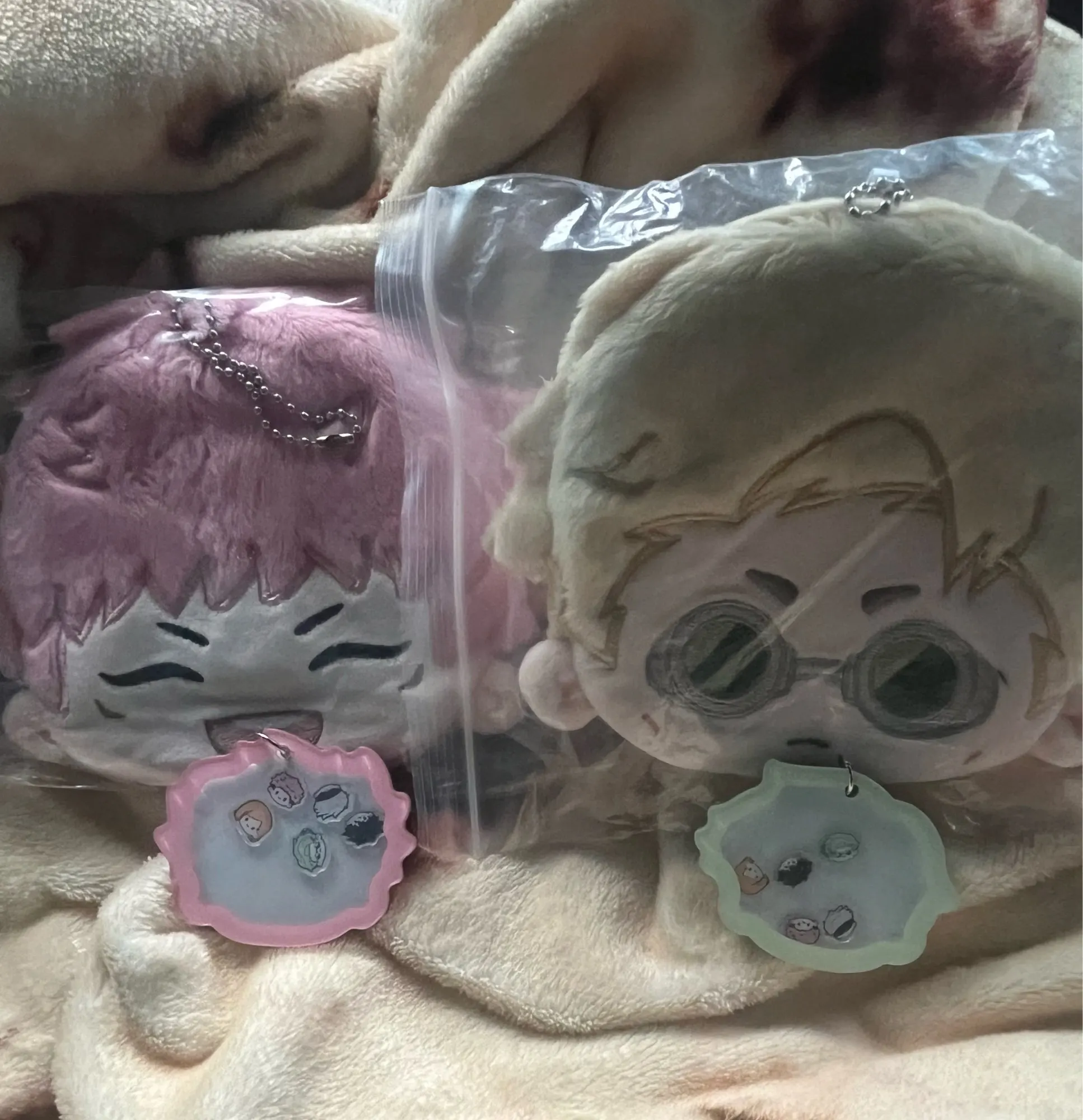 • Dual Charm Design - One side with a white-haired blindfolded sorcerer, the other with his dark-haired companion