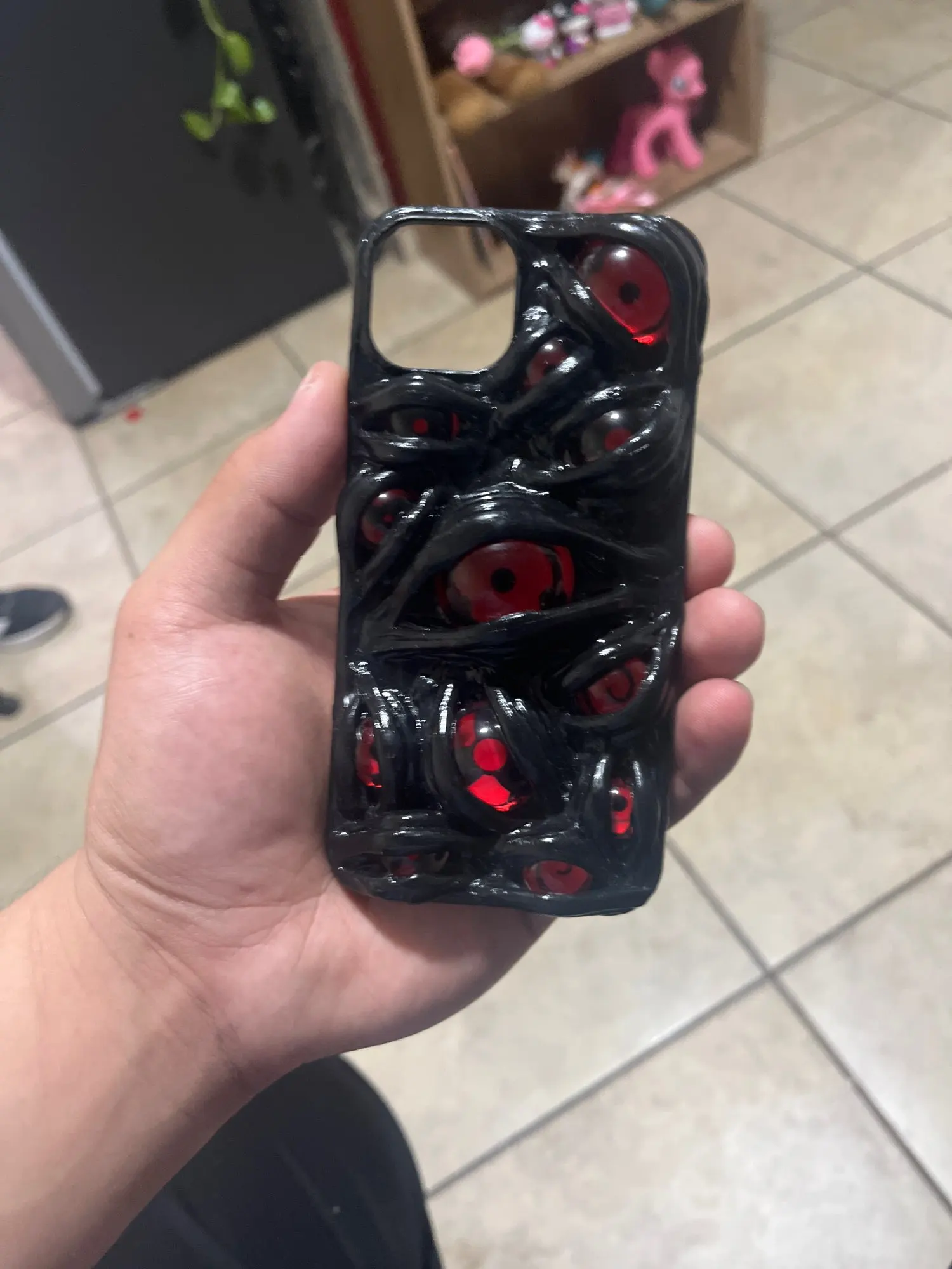 Protect your device with this hypnotic, spiral-patterned phone case, inspired by legendary ocular mystics. Featuring a bold crimson-and-black design with intricate layered details, this case is perfect for those who command attention—and guard their secrets. Durable, scratch-resistant material with raised edges for screen/camera protection. Channel the power of perception.